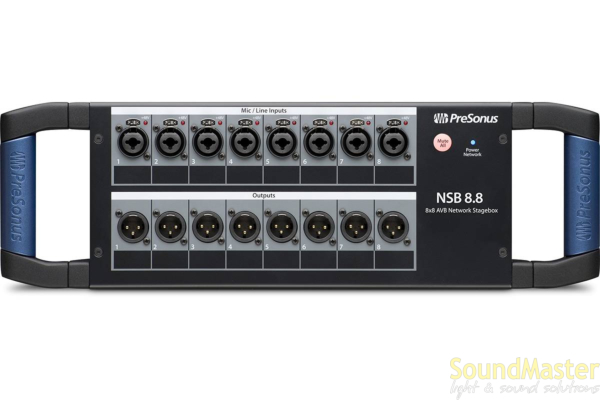 Цифровий стейджбокс Presonus NSB 8.8 призначений спеціально для консолей StudioLive Series III. на 16 входів і 8 виходів. Завдяки мережі AVB всі сигнали проходять через один легкий кабель CAT5e або CAT6 Ethernet. є можливість дистанційного керування